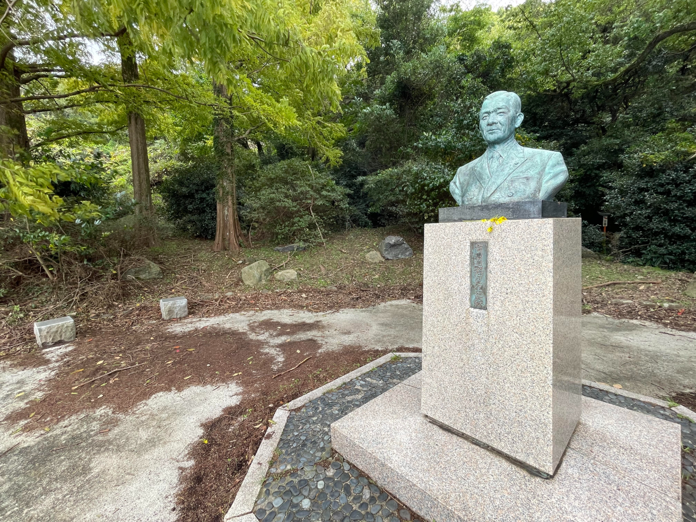 そのふもとに 初代市長守田道隆さんの胸像があることも