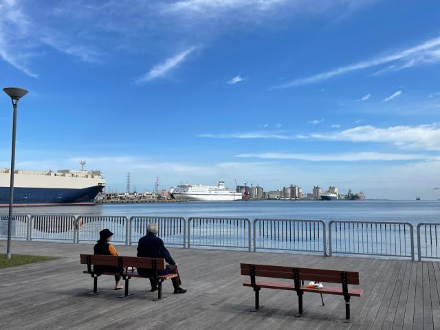 フェリーが見える公園で