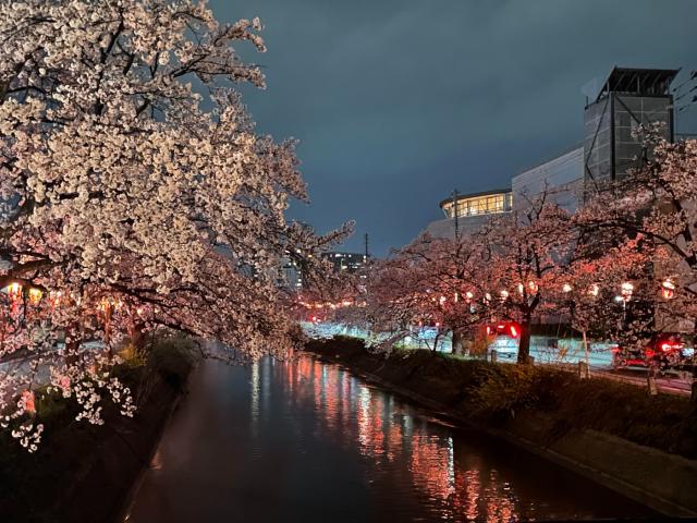 夜桜を一人歩きながら楽しむ・・