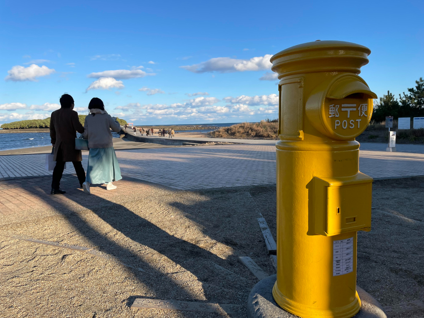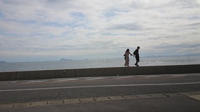 海岸を若い二人が手をつないで歩いていました