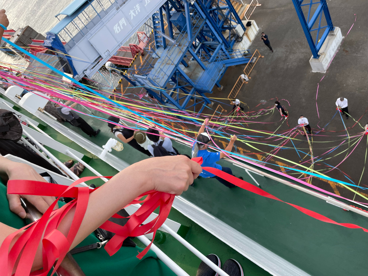 乗船客にテープが渡されました